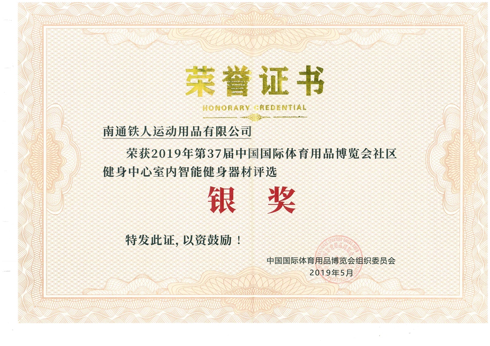 2019 2019體博會室內智能健身器材銀獎 中國國際體育用品博覽會組委會 查看